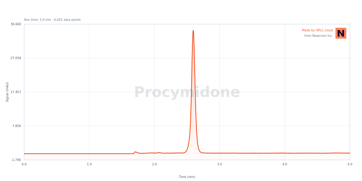 The HPLC Method for Analysis of Procymidone on Alltesta™ Gradient is designed for Procymidone, a dicarboximide fungicides compound. Procymidone is a pesticide and fungicide with the chemical formula C13H11Cl2NO2.