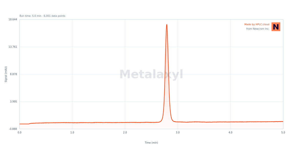 The HPLC Method for Analysis of Metalaxyl on Alltesta™ Gradient is designed for Metalaxyl, a pesticide compound. Metalaxyl, also known as methyl N-(methoxyacetyl)-N-(2,6-xylyl)-DL-alaninate, is a systemic fungicide with the chemical formula C15H21NO4.