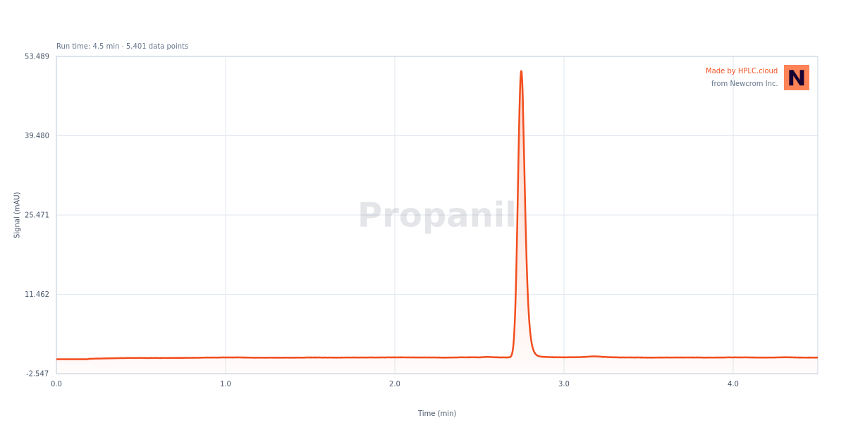 The HPLC Method for Analysis of Propanil on Alltesta™ Gradient is designed for Propanil, a herbicide compound. Propanil is a contact herbicide with the chemical formula C9H9Cl2NO.