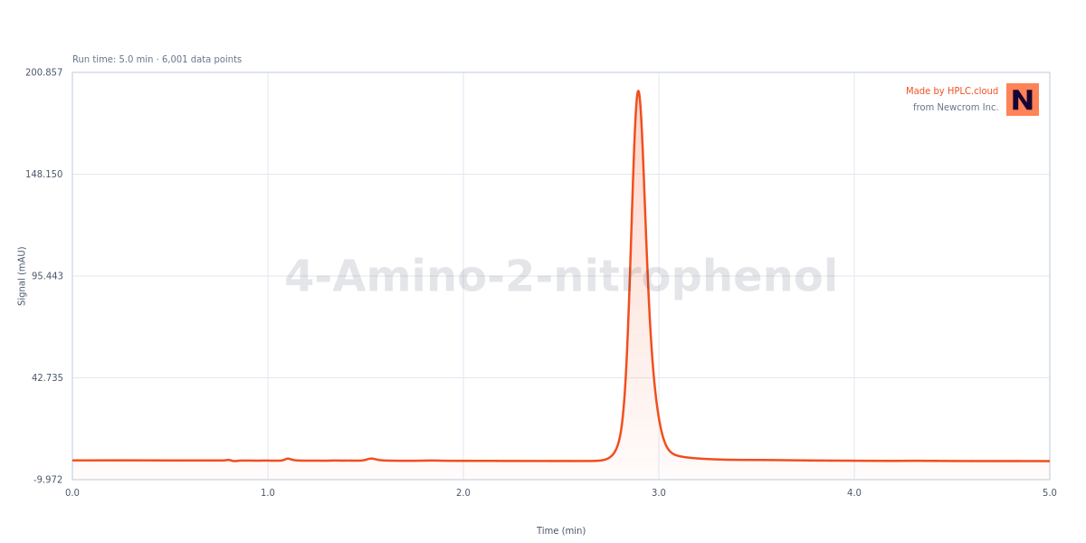 The HPLC Method for Analysis of 4-Amino-2-nitrophenol on Cromite™ is designed for 4-Amino-2-nitrophenol, a hydrocarbon compound. 4-Amino-2-nitrophenol is a hydrocarbon with the molecular formula C6H6N2O3.